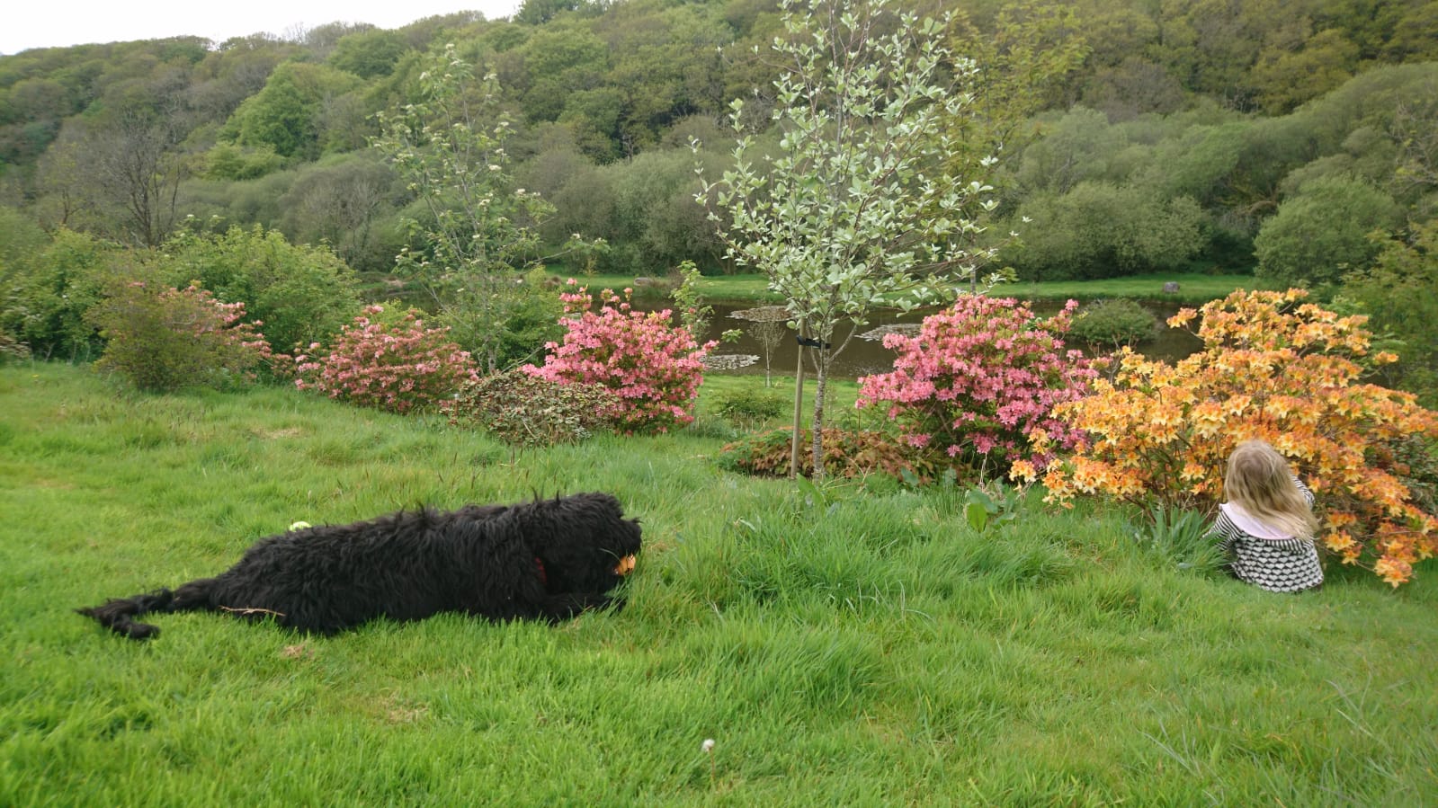 When your dog is as big as a cow. A little puppy, Rufus (Astra Fidelis Gabriel) and a little Highland calf.