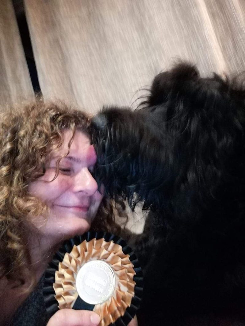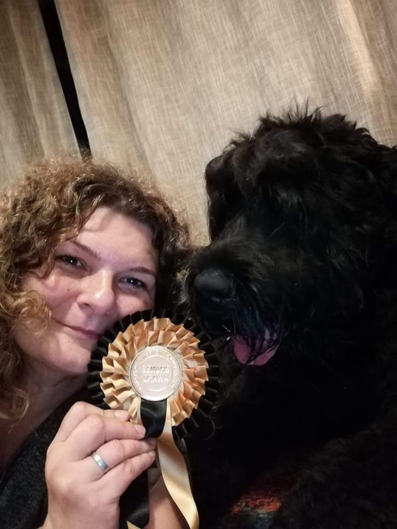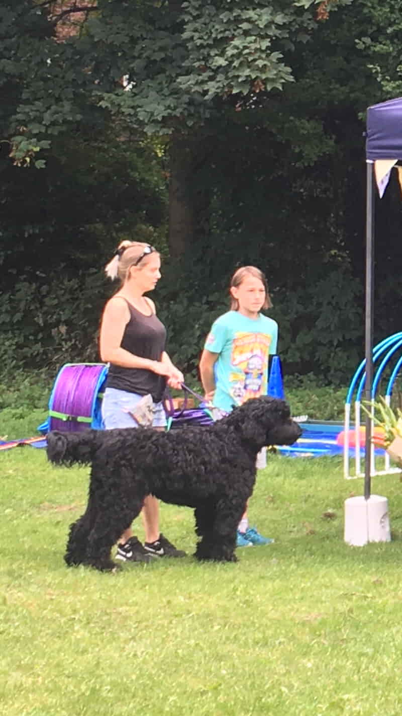 Black Terriers are judged in beautiful sunny day by Nijole Zieniene (LV). The judge checks the anatomy of individual dogs quite carefully. Argus Electra DE LA BUGATTI starts in the junior class in a large group of 5 and is once again appreciated. She wins her class (excellent, 1st place, Junior Winner) and the comparison for the best Junior in Breed. At the end we are compared with the best bitch and dog of the black terrier iiiiii ... we get Best of Breed BOB. This is our first such great success - huraaaaaa !!!