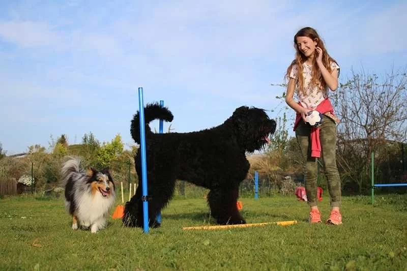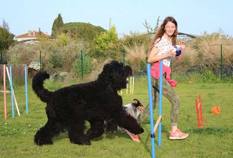 Astra Fidelis LESTER during training on the obstacle course. Black Terriers only look like calm bears, but just see how they can jump!